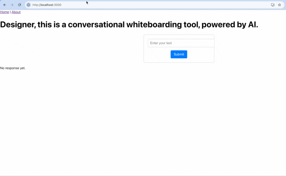Now that we have a working coded prototype that will generate a design white boarding exercise prompt, I am ready to move to the next stage. That is, enabling the user to interact with the AI to ask questions, comment on the prompt, share ideas and concepts.