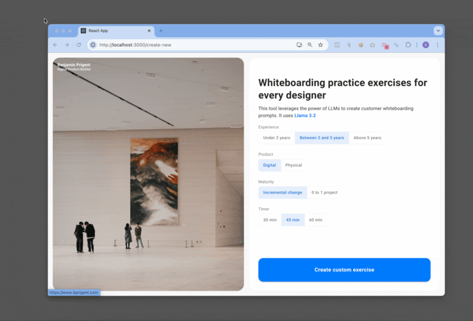 In the last couple of days, I worked on the product side of things. I have decided to focus on helping young designers practice for their white boarding interview.